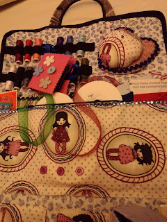 Yaaaa, yaaaa, ya, nos dejamos de tanta introducción, y vamos al lío que no es otro que exponer nuestro trabajo. Pero antes debemos contar su objetivo: Se trata de un costurero de tela, podría ser un costurero de viaje, sí podría ser. Es un regalo para una modistilla que con ocho años, le pidió a los reyes magos una máquina de coser, ha dejado a un lado (por no decir que se ha desprendido) de sus juguetes infantiles y ha comenzado su andadura en el mundo de la costura.